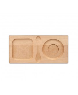 Wooden three-section cup holder.