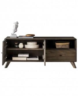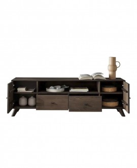 Handcrafted of real oak veneer and steel, this stand has a minimalist design.