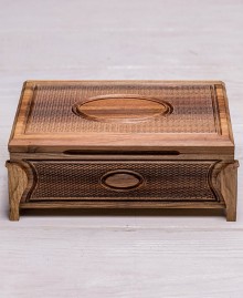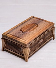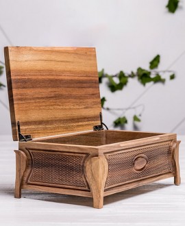 The box is decorated with fine carvings and has special areas for personalised engraving: text, logo or even a black and white photo. Natural wood, coated with eco-friendly oil, ensures strength and durability.