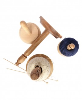 This functional wooden ball winder made of natural oak is designed for comfortable and organised knitting. It allows you to easily wind and unwind yarn without tangling, maintaining a steady feed of thread while you work.