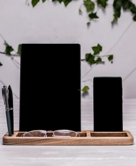 Now you don`t have to look for pens and other small items on the table - there will always be a place for them, and a successful arrangement of your gadgets - a smartphone and a tablet, will leave them always in your sight. This stand will be an excellent gift for a person of any age and profession. It remains only to find what to put there.