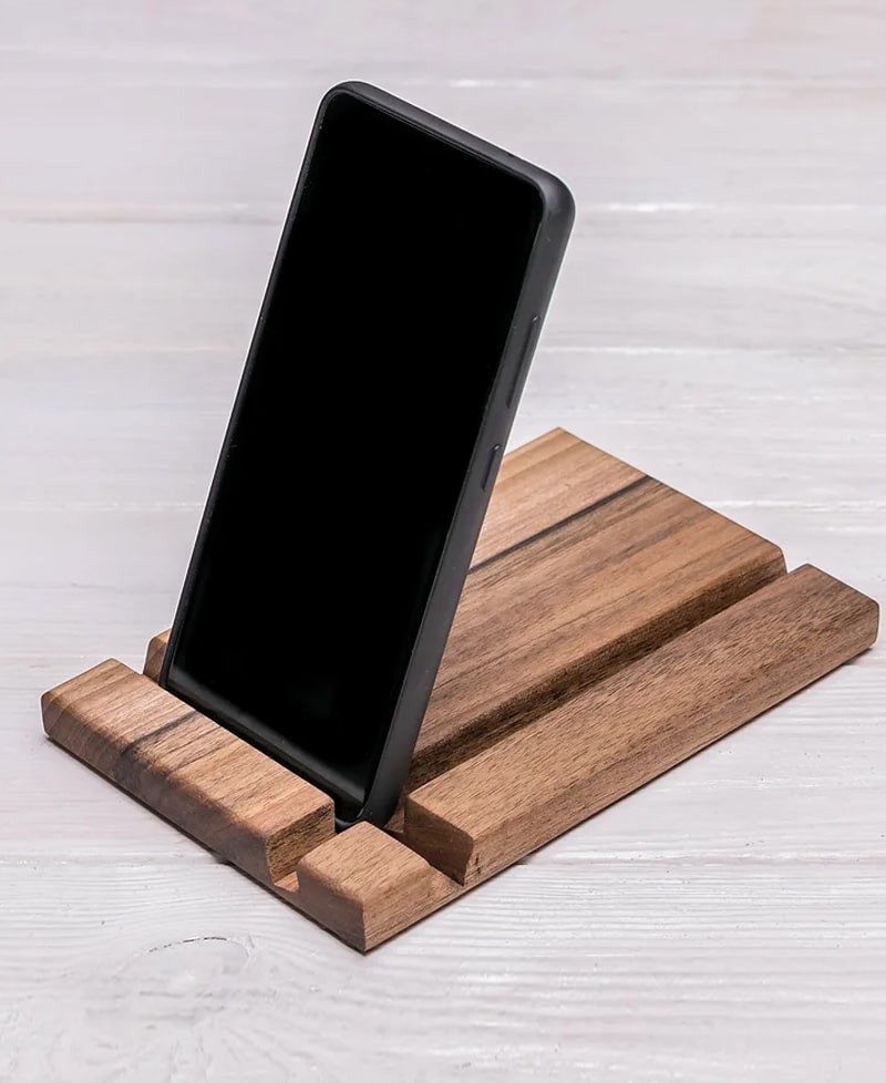 Stylish stand made of walnut wood for the gadget. Thanks to two grooves of different widths, this accessory perfectly holds various gadgets. Buying this stand as a gift to friends or acquaintances, you will definitely not go wrong, in addition, the optimal groove width ensures the stability of the smartphone!