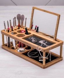 A cosmetics organizer is a useful thing. It will fit all the necessary things for makeup: jars, tubes, brushes and many other small things. Due to the fact that all cosmetics are in one place, this will simplify the process of applying makeup and save time.
