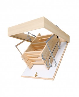 The Compact Mini attic ladder saves living space as much as possible, as it folds compactly under the ceiling. Reliable metal parts ensure easy and safe opening and closing of the manhole cover.