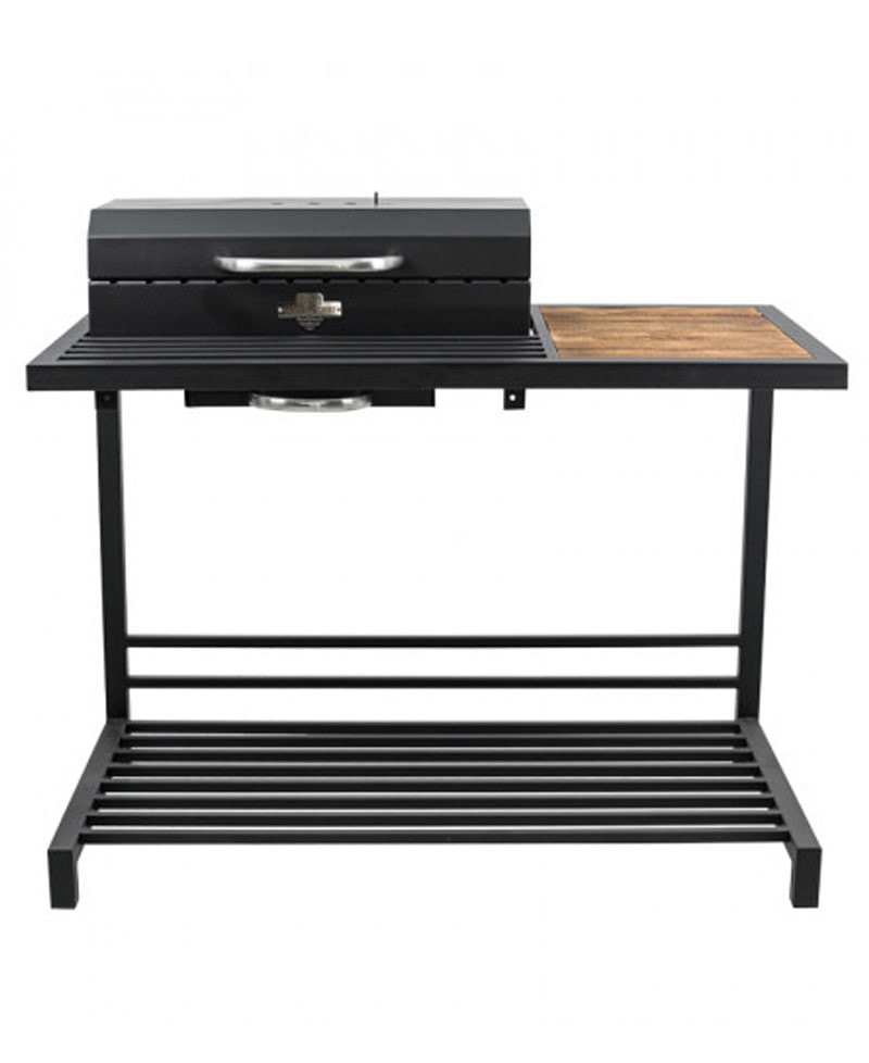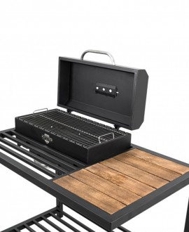 The well-designed barbecue grill not only provides comfortable cooking of delicious dishes, but also adds cosiness to your backyard. The combination of grill, barbecue and comfortable table functions creates a full-fledged work area for culinary experiments. The sturdy metal base is harmoniously combined with alder planks, creating a stylish accent in your garden or terrace.