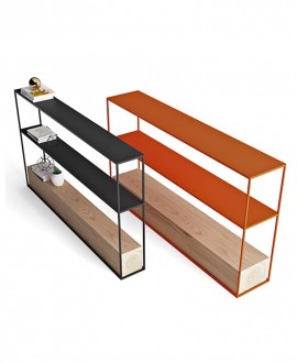 Ideal shelving for things that should always be in sight: the decor in your store, the documents in your meeting room, the books in your guest room. It will fit organically into the interior, regardless of the design of the room. Available in several color options of metal and wood surface.