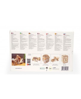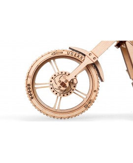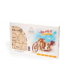 Motorcycle model made of wood "Bike VM-02" is made of high quality plywood board. The kit is fully equipped with everything necessary for assembly. The workmanship of the parts is high; a laser method is used to cut elements from the plywood board. Inside the package you will find plywood boards, from which you only need to squeeze out the finished parts and transform them into a finished working model of the bike. You don't need any glue or special tools. A 3d puzzle is created with step-by-step illustrated instructions with explanations in 11 languages (Ukrainian, English, German, French, Polish, Spanish, Russian, Turkish, Italian, Chinese and Korean).