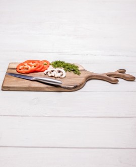 This is a high-quality board for cutting products, and the original appearance allows you to serve ready snacks to guests on it. It is very easy to clean with water and a rag, and in order to maintain an attractive appearance for as long as possible, we recommend treating it with natural oil every six months.