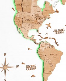 Wooden world map "Gold" (with backlight)