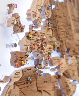 The map can serve as a personal travel board: it is convenient to mark the countries you have visited, plan new routes or simply get inspired with ideas for travel. Natural wood is pleasant to the touch and conveys the texture of the material well, making each product unique.