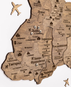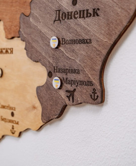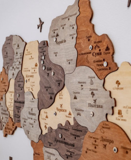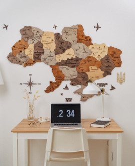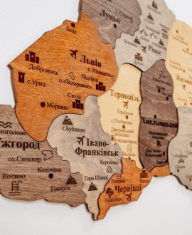 The wooden map of Ukraine "Multicolour" is a modern wall panel that combines bright colourful design with a voluminous wooden structure. Each layer of the map clearly reproduces regions, borders and geographical elements, creating depth and the effect of a living map on the wall. Thanks to the combination of natural wood and high-quality printing, the map looks stylish and expressive while retaining the tactile warmth of wood.