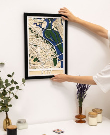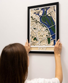 The wooden painting with the map of Kyiv is a high-tech combination of cartographic accuracy and natural aesthetics that transforms the familiar streets of the capital into a stylish interior element. Thanks to detailed laser engraving on high-quality birch plywood, every district, avenue and bend of the Dnipro River is reproduced with incredible clarity. The multi-layered structure of the map creates a light volume that adds depth to the picture and makes it a striking accent in both a modern office and a cosy living room.