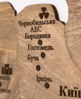 Each element of the product is carefully tinted with environmentally friendly oil wax in noble light shades, which allows you to fully preserve and emphasise the unique pattern of the wood fibres. All city names and borders are applied using high-precision printing, which guarantees perfect clarity of every detail for many years.