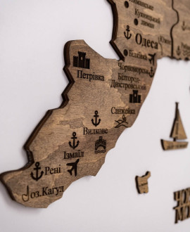 The Terra wooden map of Ukraine is an exquisite combination of modern design and natural aesthetics that transforms an ordinary wall into a three-dimensional art installation. Thanks to its unique multi-layered structure made of high-quality birch plywood with a thickness of 4 to 9 mm, the map creates a deep 3D effect that captivates with its play of light and shadow.