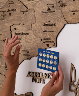 You get a complete set that includes pin-markings of hero cities, decorative elements such as aeroplanes, ships and wind roses, as well as special templates and an adhesive base for quick and easy installation.