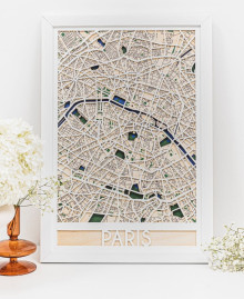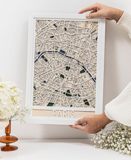 The wooden 3D map of Paris embodies the architectural sophistication and romantic spirit of the French capital in your interior. Using high-precision laser modelling technology, we have recreated the unique radial layout of Parisian boulevards radiating from the Arc de Triomphe and the picturesque curves of the Seine. The multi-layered construction of selected birch plywood creates an amazing depth, transforming the map into a three-dimensional artistic canvas, where each street and neighbourhood has its own relief history.