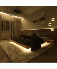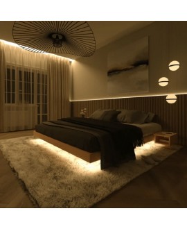 Wooden double bed.