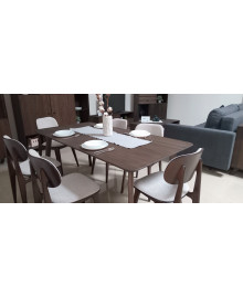 The Groove wooden table is an exquisite dining table made of natural beech, coated with natural oil in a deep wenge shade. Its large dimensions (length 1800 mm, width 900 mm, height 750 mm) make it the centrepiece of a spacious dining room or living room. The material – laminated/solid beech – guarantees durability and a distinctive wood texture.