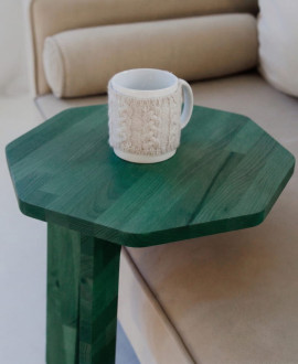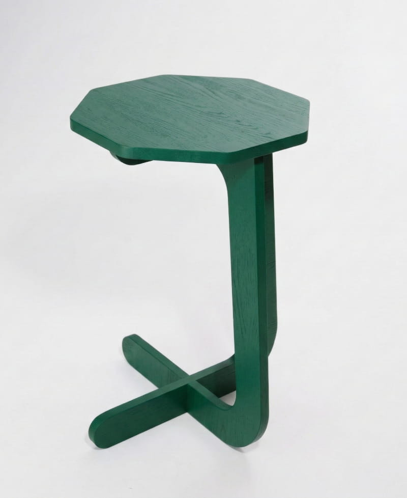 Wooden C-Shaped Table LIGNO (Octagonal Tabletop, Alpine Green)