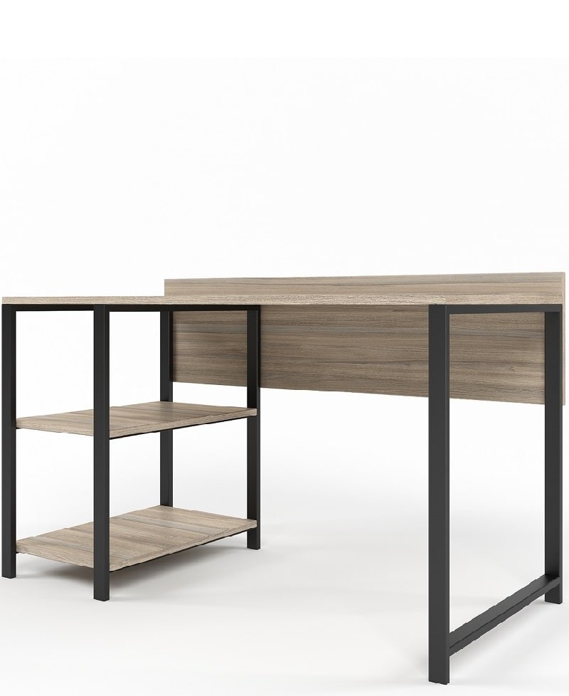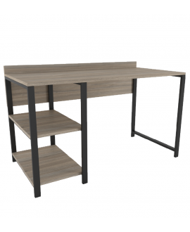 One side leg on the left or right has 2 shelves. On them you can conveniently place computer accessories or boxes for storing papers.