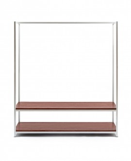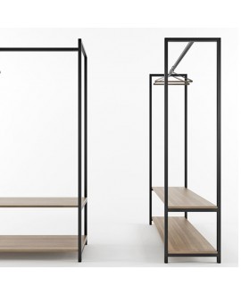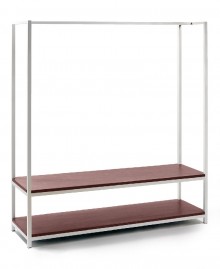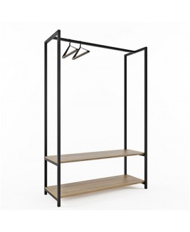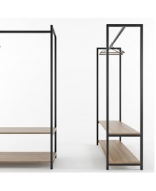 The clothes hanger is available with one shelf and also with two shelves. Moreover, you can choose not only the color of the frame (black or white), but also the color of the shelves.