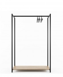 The clothes hanger is available with one shelf and also with two shelves. Moreover, you can choose not only the color of the frame (black or white), but also the color of the shelves.