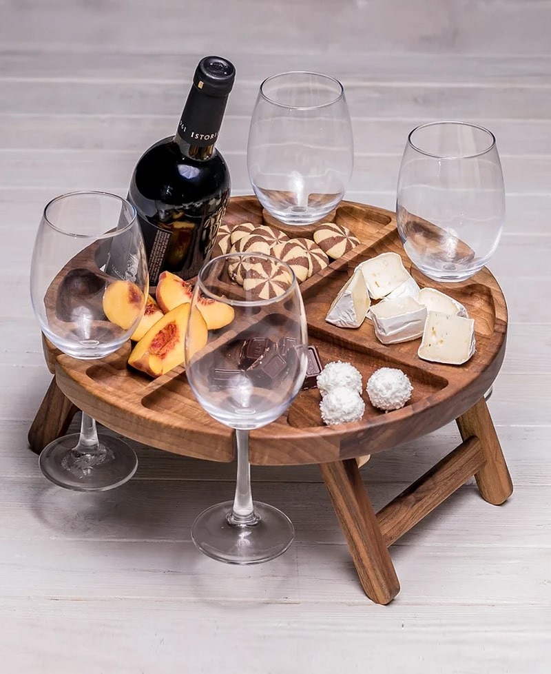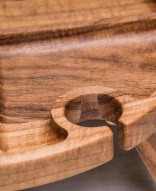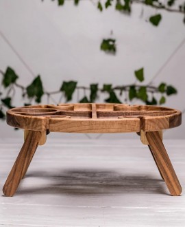 We offer a wooden table for romantic evenings in bed. It is ideal for serving wine, glasses and snacks, creating a cosy atmosphere. Thanks to the thoughtful design and magnetic locks, the legs of the table are securely fixed in any position.