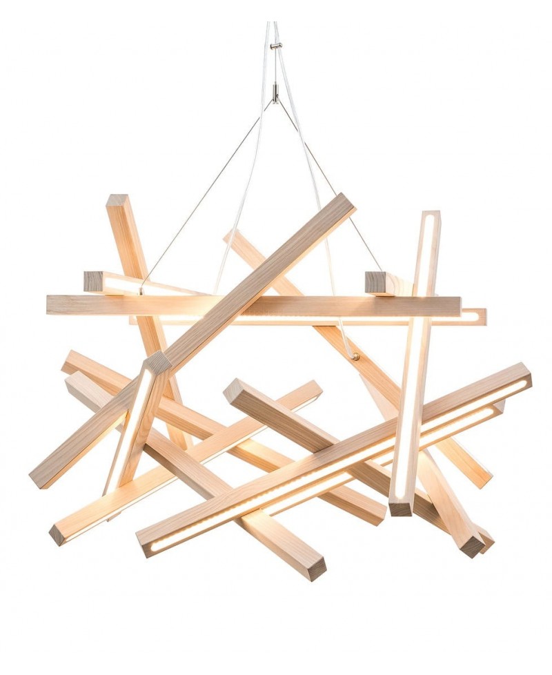 The reliable design of the chandelier is made of natural wood and processed with eco oils. It contains 7.6 m premium LED strip, which has 4 light color options (2700 K, 3000K, 4000K, 5000K).