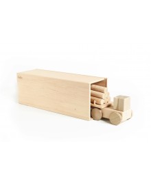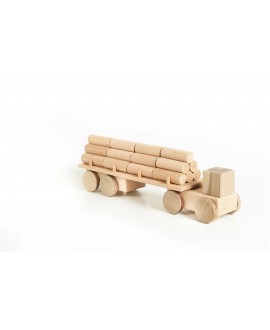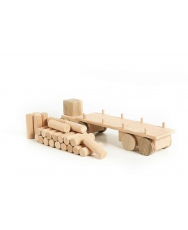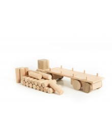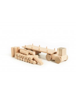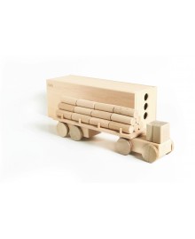 The Big Logging truck is a wooden vehicle for little builders. This toy is a real helper in children's games. It is made of natural alder and ash wood, without a varnish coating. The logging truck carries 24 wooden logs, and its tractor protects the cargo from bad weather. The set includes a garage with sliding doors, which adds interactivity. There is an additional string for moving the toy. Can be combined with other toys or used to build a collection of wonderful trucks!