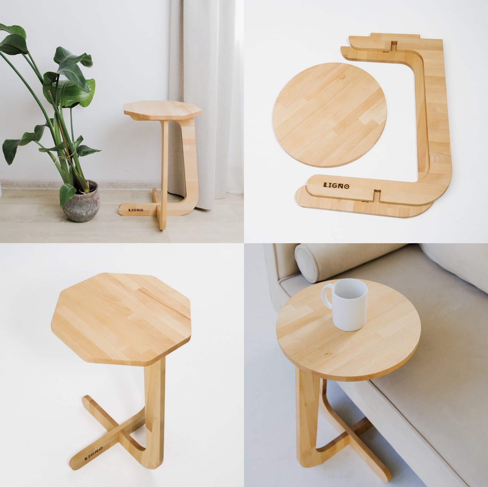 Introducing the new collection by LIGNO – a C-shaped table made of solid Oak wood, available in two variations: with a round or octagonal tabletop. This elegant and functional addition to any interior combines natural beauty with practicality, ensuring comfort and style in your home.