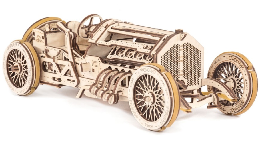 Wooden 3D puzzle “Grand Prix Car” this is a realistic and elegant design of a sports car from the 30s of the twentieth century. Feel like a racer and mechanic of the past century, participating in the legendary Grand Prix car races.