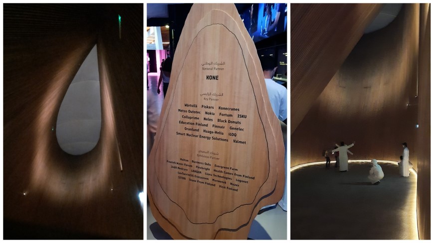 The Finnish Pavilion "Snow Cape" has a laconic and functional design and occupies the territory of "Mobility". It reminds an Arabian tent made of wood. It has incorporated the design of Finnish architecture, as well as Arabic elements. The highlight of the pavilion is the spacious “gorge” hall, which is made of wood.
