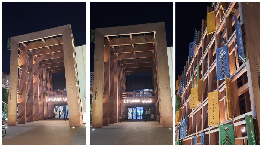 "Openarium" is the name of the Lithuanian Pavilion, it is located in the “Sustainability” sector and expresses the country's openness to everything new: creativity, community, sustainable development. The two-storey building impresses with its wooden structures and ornamental shutters decorated with traditional motives. Wood was chosen as the main material as it incarnate sustainability, comfort and naturalness.
