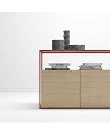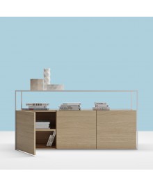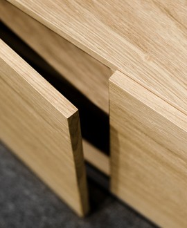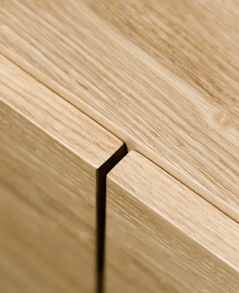 Thanks to Blum soft-closing hardware, the cabinet doors close silently. The frame of the cabinet is made of MDF and natural oak veneer, including a strong back wall and assembled with a hidden minifix connection.