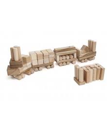 This wooden construction set, “Small”, consists of 86 elements and 5 geometric shapes designed to develop fine motor skills, balance, and imagination. The minimalist design and simple shapes open up space for creativity. It is made of beech, maple and walnut, without varnish or paint – completely safe for children. A real foundation for development through play!