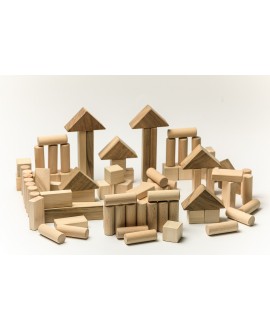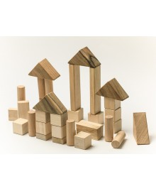 Natural wooden blocks with five types of details. All blocks without any paints. Painted only by the natural texture of wood.