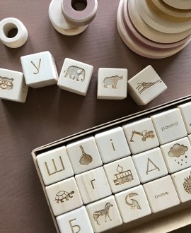 A set of 36 wooden blocks with the Ukrainian alphabet in beautiful colours. Each cube has rounded edges. They are of the perfect size for small hands of a child.