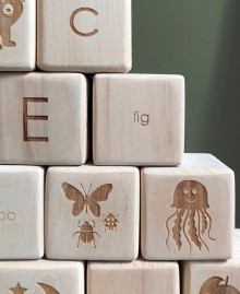 A set of 26 wooden blocks with the English alphabet from A-Z. Each cube has rounded edges. They are of the perfect size for small hands of a child.