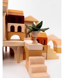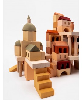 In the set you will find a large number of various pieces that allow you to build without restrictions. Blocks and plates of various sizes, houses with windows, stairs, arches and columns. But we would like to draw special attention to the details with which you can build an Italian city: