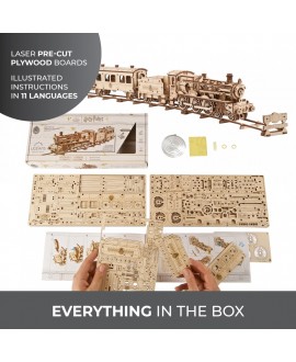 The DIY model train recreates the look of the "GWR 5972 Olton Hall" locomotive used in the Harry Potter movie series, based on a magical universe, created by J. K. Rowling. The model is rated "Advanced" difficulty level with an estimated assembly time of 7 hours. The locomotive can be assembled in about 3 hours, giving you a head start on imaginative play! This DIY wooden model kit consists of 504 parts that are laser pre-cut into wooden boards. To assemble, simply remove the pieces from the boards and snap them together following the detailed, illustrated instructions available in 11 languages. One of the great things about our models is that no glue or special tools are required—everything you need for assembly is included in the box.