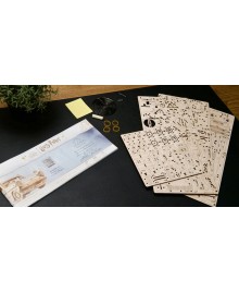 The Flying Ford Anglia DIY wooden model has 246 parts, is rated "middle" difficulty level, and has an estimated assembly time of 6 hours. To assemble, simply remove the pieces from the laser pre-cut boards and snap them together following the detailed, illustrated instructions. Instructions are available in 11 languages. No glue or special tools are required—everything you need for assembly is included in the box. Be sure to use the included sandpaper and wax to smooth and lubricate the moving parts, for optimal function.