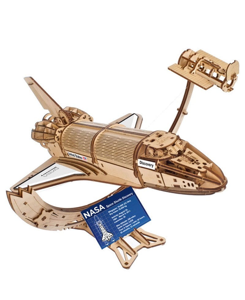 Immerse yourself in the fascinating world of space exploration and technology with this 3D wooden model of the Space Shuttle Discovery! This NASA-owned spacecraft has become legendary, having made the most launches and landings in history with 39 between 1984 and 2011.