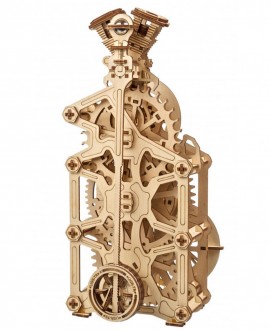 What do they say about a well-tuned engine? That it runs like a clock. And here's a new 3D construction set - a fine-tuned clock that works (and looks) like a real engine! This pendulum table clock simulates the workings of an engine with moving pistons at the top of the model. A stylised speedometer and tachometer have been added to indicate the time (hours and minutes).