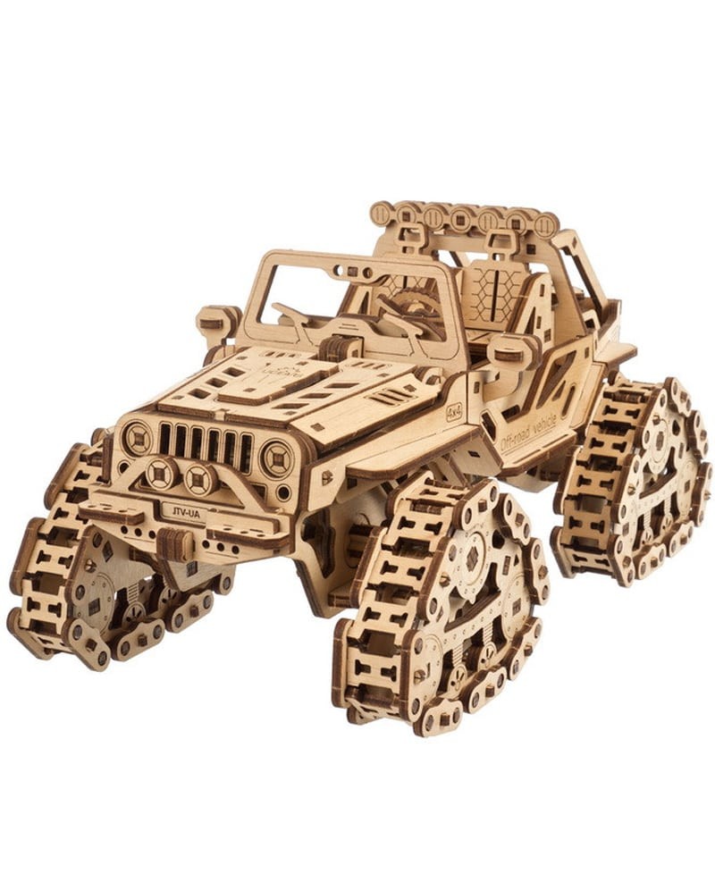 Add a new vehicle to your collection of vehicles - the Crawler SUV. This wooden mechanical construction set promises exciting off-road journeys that will be remembered for a long. No matter what kind of four-wheel drive off-road vehicle you choose: a jeep for hunting, an ATV for fun, a buggy for family trips or a truck for working in the field and forest - the tracks of this vehicle will make you all want to go for a ride.