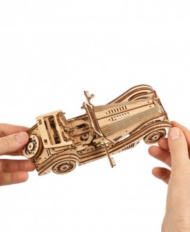 Thanks to its dual motor, this wooden construction set can move forward and backwards, making smooth turns to the left or right. To start the car, you only need to make a few turns with the key and you are ready to travel. Rubber tyres provide excellent grip, while the realistic opening of side doors and spare wheels add to the authenticity of the model.