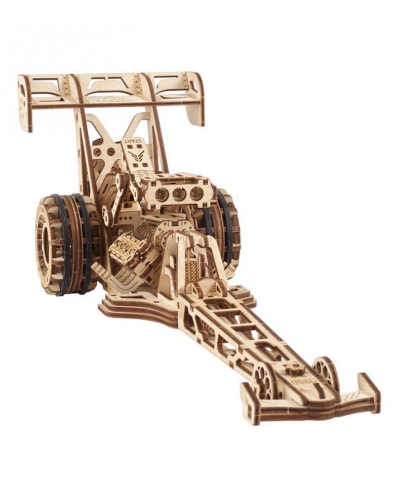 You don't need to go to a real drag strip to feel the adrenaline of speed. Build your very own Dragster, enjoy the assembly process and get pleasure from the performance of this high-speed car. Start your collection of wooden models today and you will discover the exciting world of 3D construction sets and mechanical toys. The Dragster is the perfect gift for anyone who appreciates speed!