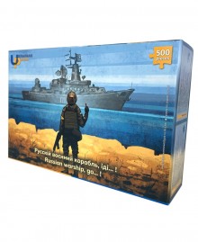 The "RUSSIAN WARSHIP GO TO...!" jigsaw puzzle consists of 500 pieces and is made of high quality cardboard. Due to the high precision of cutting, each piece of the puzzle is unique and has only one option for placement, making the assembly process easy and enjoyable.