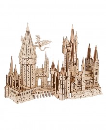 The model shows all the details of the school of magic, including towers, parapets and columns, while the reverse side shows the interior - the Great Hall, rooms and courtyard. All of this is assembled without glue, only with the help of illustrated instructions. The dragon from the Goblet of Fire film is also here, soaring near the main tower.