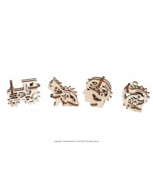 Each miniature models carries its own idea and has the basic elements of mechanics: the Tractor is a symbol of power, the Cat represents freedom, the Head embodies Intelligence and the Heart, the 4th Ugears fidget-tribik, demonstrates your passion.