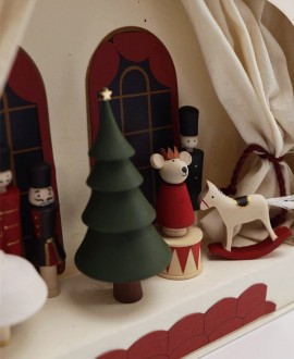 The Nutcracker Theatre set is a play set of 8 figures that transforms an ordinary box into a stage for a fairytale performance. The box-stage has decorative windows, cardboard seats and cotton curtains that add realism to the theatre game. The base of the stage contains a metal element, and the figures with magnets in the bases are securely fixed during the game.